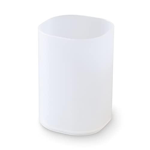 ポリプロピレンシリーズの「ブラシ・ペンシルスタンド」をペンシル系のものを立てるために買ったのですが、「ペンシル系のものも1/4横ハーフに寝かせて使ったほうが探しやすくて便利」ということに気づいたので、これは綿棒入れになってます。